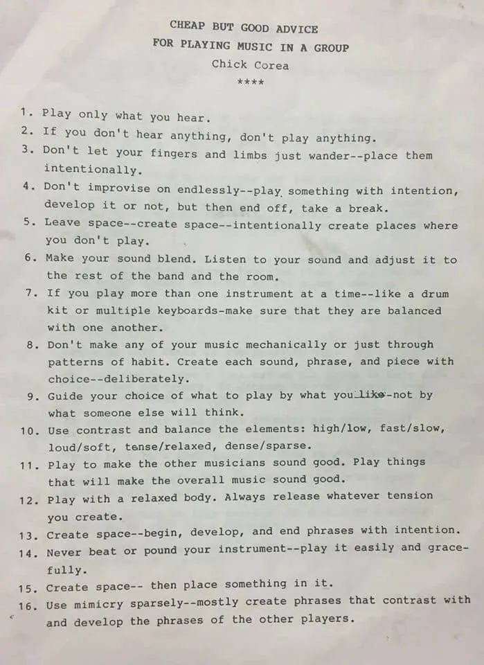 Cheap But Good Advice for Playing In A Group ~ Chick Corea